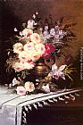 Still Life with Assorted Flowers in a Brass Vase by Modeste Carlier