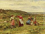 A Mother And Child Picking Flowers by Johannes Evert Akkeringa