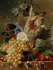 Grapes Strawberries Chestnuts an Apple and Spring Flowers by George Jacobus Johannes Van