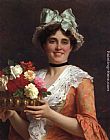 A Young Beauty holding a Bouquet of Flowers by Fritz Zuber-Buhler