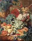 Fruit Still-Life with Squirrel and Goldfinch by Abraham Mignon