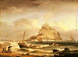 Fishermen rowing in, before St. Michael's Mount by Thomas Luny