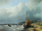 Fisherfolk by a Beached Bomschuit by Andreas Schelfhout