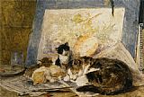 A Cat and her Kittens in the Artists Studio by Henriette Ronner-Knip