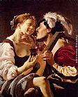 A Luteplayer Carousing With A Young Woman Holding A Roemer by Hendrick Terbrugghen