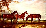 Marvel, KingFisher And The Lad, Three Hunters Belonging To William Angerstein, In A Field With His Dog Spring by John Ferneley Snr