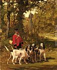 A Huntmaster with his Dogs on a Forest Trail by Charles Olivier De Penne