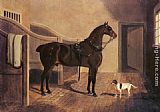 A Favorite Coach Horse and Dog in a Stable by John Frederick Herring Snr