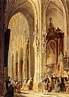 A Church Interior With People Attending Mass by Johannes Bosboom