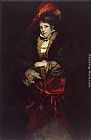Portrait of a Lady with Red Plumed Hat by Hans Makart
