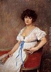 Portrait Of A Lady In Pink Ribbons by Raimundo de Madrazo y Garreta