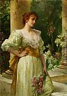 A Young Woman holding a Bouquet of Summer Flowers by Fernand Toussaint