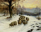 A Shepherd and his Flock on a Path in Winter by Wright Barker
