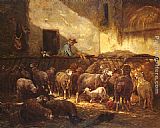 A Flock Of Sheep In A Barn by Charles Emile Jacque