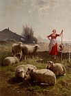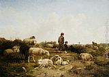 A Shepherdess And Her Flock by Cornelis van Leemputten