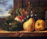 Still Life With Pears, Plums In A Glass BowlAnd White Currants On A Table by Eloise Harriet Stannard