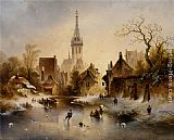 A Winter Landscape with Skaters near a Village by Charles van den Eycken