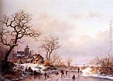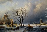 A Winter Landscape with Figures near a Castle by Charles Henri Joseph Leickert