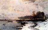 A Winter River Landscape At Sunset by Wilhelm von Gegerfelt