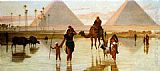 Arabs Crossing A Flooded Field By The Pyramids by Frederick Goodall