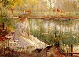 An Elegant Lady with her Dog by Eduardo Leon Garrido