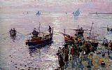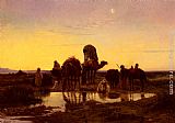 Camel Train By An Oasis At Dawn by Eugene-Alexis Girardet