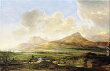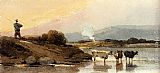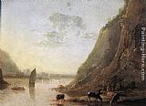An Indian Herdsman On A Bank, Cattle Watering In A River Below by George Chinnery