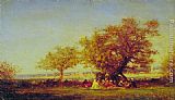 Figures Resting On The Banks Of A River, A Bridge In The Distance by Nicolas-Jacques Juliard