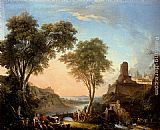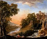 Figures Resting On The Banks Of A River, A Waterfall In The Foreground by Nicolas-Jacques Juliard