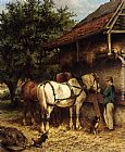 Two Horses By A Stable by Wouterus Verschuur Jr