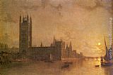 Westminister Abbey, The Houses of Parliament with the Construction of Wesminister Bridge by Henry Pether