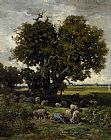 Peasant Woman and a Boy in a Wooded Landscape by Hendrik Barend Koekkoek