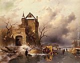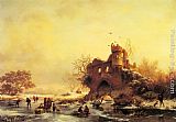 Skaters on a Frozen Lake by the Ruins of a Castle by Charles Henri Joseph Leickert