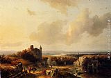 AnExtensive River Landscape With Travellers On A Path And A Castle In Ruins In The Distance by Barend Cornelis Koekkoek
