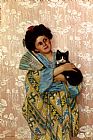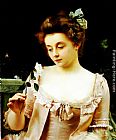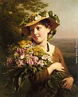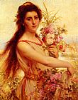 A Young Beauty holding a Bouquet of Flowers by Fritz Zuber-Buhler