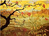 Branches of an almond tree in Blossom in Red by Vincent van Gogh