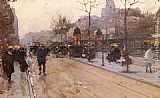 A Parisian Street Scene with Sacre Coeur in the distance by Luigi Loir
