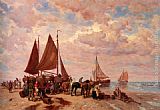 A Coastal Scene Wih Fisherfolk Sorting The Day's Catch, Beached by Desire Thomassin