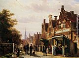 Street scene with figures by Cornelis Springer