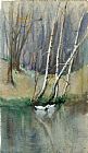 Wood Scene with Birch Trees and Ducks by Edward Mitchell Bannister