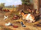 A Farmyard Scene with goats, chickens, doves by Edgar Hunt