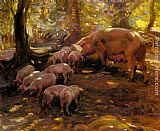 Pigs In A Wood, Cornwall by Sir Alfred James Munnings