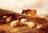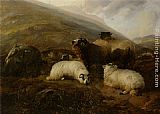 Rams And A Bull In A Highland Landscape by Thomas Sidney Cooper