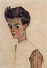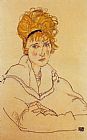 Portrait of Edith Schiele in a Striped Dress by Egon Schiele