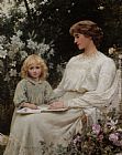 Portrait of a mother and daughter reading a book by Edwin Harris