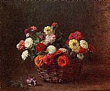 Zinnias in basket by Henri Fantin-Latour