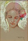 Retrato De Lola Con Vestido De Flores Blancas by Ignacio Zuloaga y Zabaleta