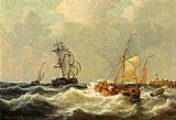 Sailing Vessels In Choppy Waters by George Willem Opdenhoff