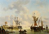 Sailing Vessels in a Calm by George Willem Opdenhoff