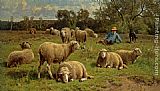 A Shepherd and His Dog Guarding a Flock of Sheep by Cornelis van Leemputten